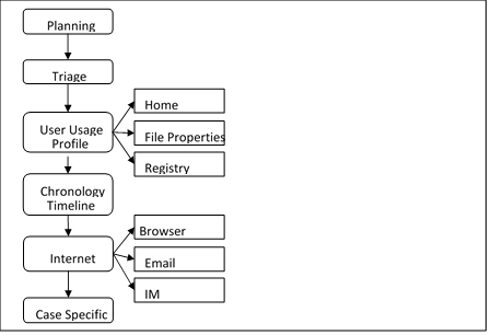 CFFTPM dimulai dengan tahap perencanaan. Kemudian dilanjutkan ke tah triage untuk mengidentifikasi dan peringkat dalam hal penting atau prioritas barang bukti, kemudian penggunaan tahap profil yang memfokuskan untuk menganalisis aktivitas pengguna dan profil bertujuan yang berkaitan bukti untuk tersangka. Kemudian timeline yaitu yang memproses kronologi kejadian. Terakhir adalah pengumpulan tahap bukti khusus agar penyidik dapat menyesuaikan fokus pemeriksaan untuk spesifik dari kasus. Misal pornografi anak akan berbeda dengan kasus kejahatan keuangan.